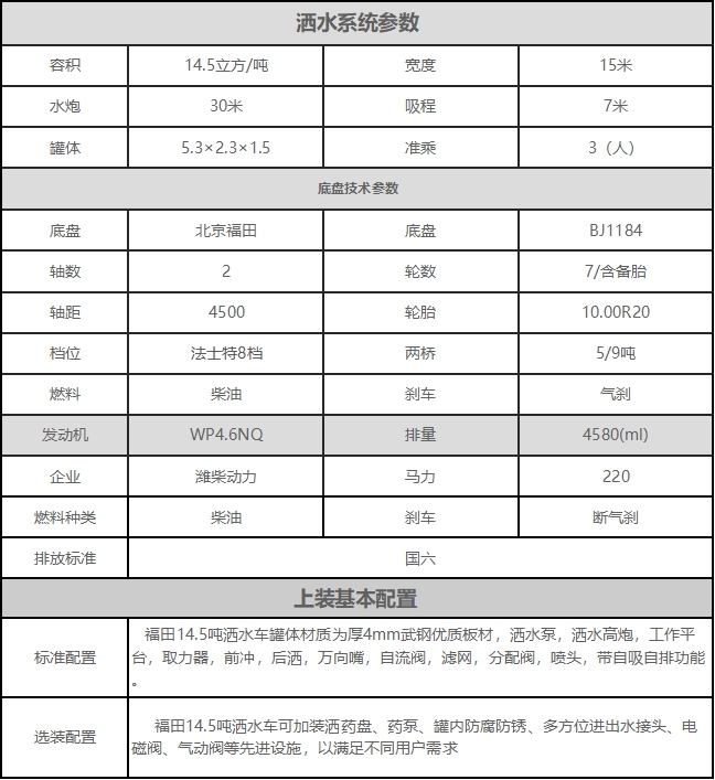 國六東風小多利卡 5噸 灑水車 核心參數項目參數軸距(mm)3308…
