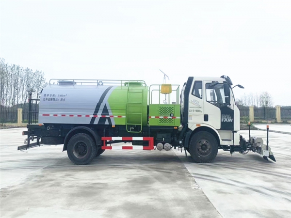 解放J6高壓清洗車(chē)是一種雙發(fā)動(dòng)機(jī)、雙水泵清洗車(chē),是在標(biāo)準(zhǔn)二類底盤(pán)的基礎(chǔ)上,加裝高壓沖洗系統(tǒng)、低壓沖洗系統(tǒng),由機(jī)械、液壓(氣路)、電器三部分合為一體的專用沖洗作業(yè)車(chē)。本車(chē)具有獨(dú)立的高、低壓兩套水路系統(tǒng),為清洗車(chē)工作提供壓力水源。其工作原理是:利用高壓水泵產(chǎn)生的高壓水,經(jīng)噴水架的高壓噴嘴噴出,利用高壓水流的動(dòng)能,以高壓力、低流量的方式進(jìn)行清洗,強(qiáng)力去污,高效節(jié)水,能將路面的陳舊污漬清洗干凈;或高壓水經(jīng)左(右)角噴噴出,清洗路緣、人行道及護(hù)欄隔離區(qū);使用高壓噴槍還可清洗路標(biāo)、廣告牌、高架路等;噴霧系統(tǒng)具有強(qiáng)大的噴霧降塵、噴撒空氣消毒劑及調(diào)節(jié)空氣濕度功能。