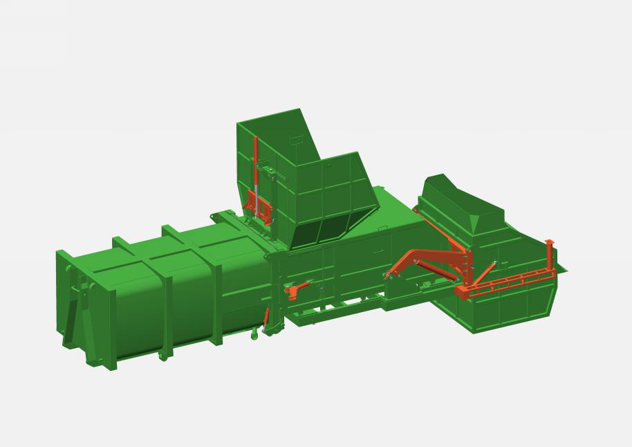 主機(jī)箱體包含:主機(jī)箱體、壓縮倉、壓頭、壓縮油缸、滑輪、液壓系統(tǒng)、電控系統(tǒng)等組成。其主要結(jié)構(gòu)件采用Q345高強(qiáng)度結(jié)構(gòu)鋼焊接成成,具有較有的耐磨性;主機(jī)箱體上的滑輪與滑臺導(dǎo)軌配合,使主機(jī)能相對滑臺滑動,液壓電控系統(tǒng)固定安裝于主機(jī)箱體上,整體簡潔美觀。箱體容積15m3,匹配16噸后雙橋車廂可卸式垃圾車。