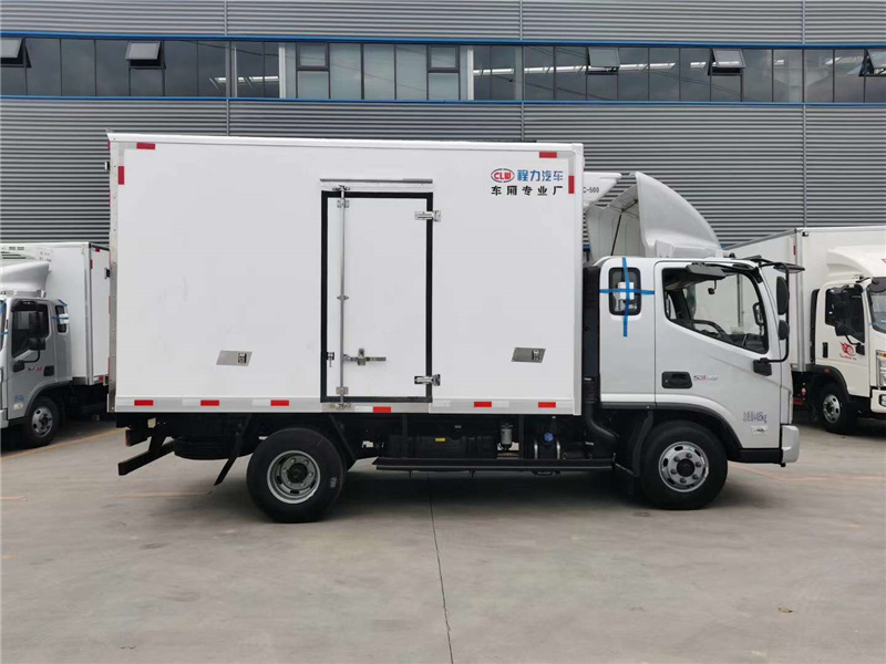 (2)廂板材質:內外壁板選用國內優質玻璃鋼(不吸光、隔熱性好、硬度強、抗氧化);中間保溫層為XPS擠塑聚笨板;廂體厚度8CM。地板采用鋁花紋板,門邊條采用迷宮式橡膠密封條。